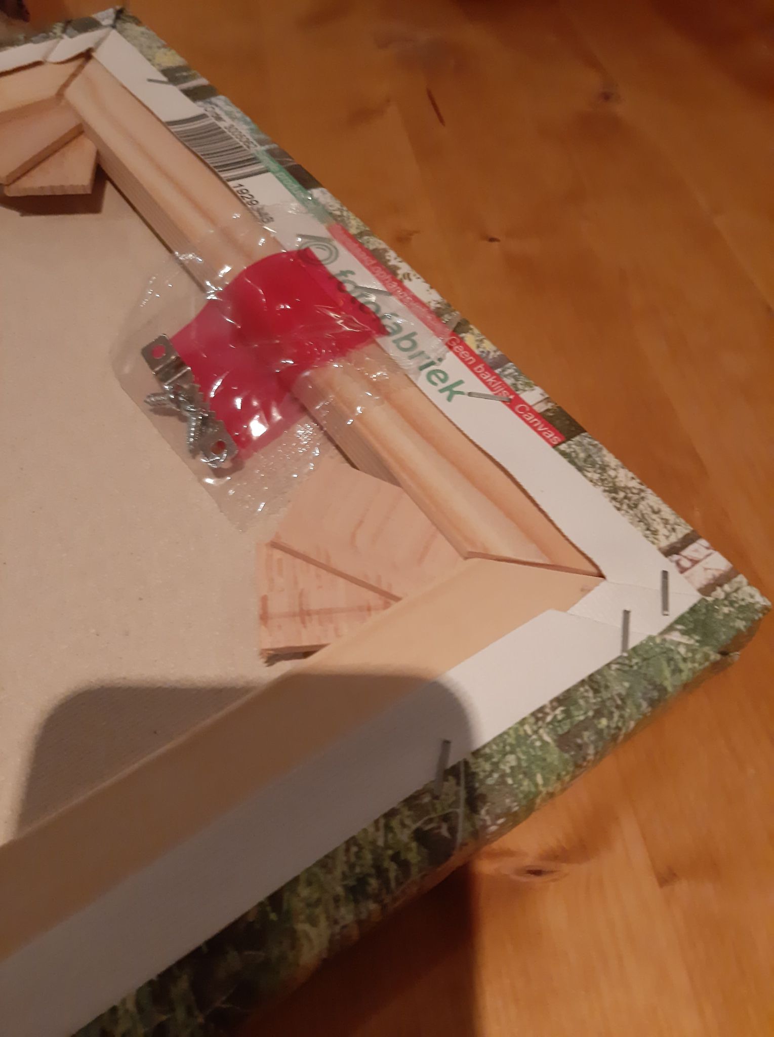 Bij het canvas zit ook nog de nodige materiaal om het op de kunnen hangen.